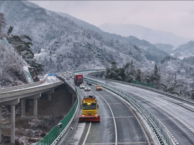 相關路段營運單位第一時間啟動除雪保通應急預案,與高速交警、路政等部門協(xié)同駐防路面重點部位,及時做好車輛疏導、交通管控、救援和事故處置等工作,盡最大努力降低雨雪天氣給道路通行帶來的影響。受寒潮天氣影響較重的山區(qū)路段迅速調配應急人員、除雪設備及物資,針對山區(qū)路段的長大橋梁、隧道出入口、陡坡彎道等關鍵節(jié)點進行重點布控,設置連續(xù)警示提醒標志,采取“小循環(huán)多頻次”模式開展融雪劑撒布作業(yè)。其中,淮河特大橋、桃墅嶺隧道等易結冰路段還首次啟用除雪融冰噴淋系統(tǒng),防止橋面夜間上凍結冰。
