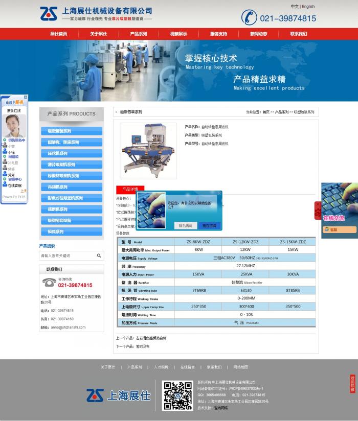 展仕機(jī)械主營業(yè)務(wù)可分為三大類:全自動吸塑成型機(jī)、全自動厚板材吸塑成型機(jī)生產(chǎn)線、高頻熔接機(jī)等;產(chǎn)品廣泛應(yīng)用于吸塑包裝,電子,精密注塑,汽車零部件、衛(wèi)浴潔具,箱包燈飾,廣告標(biāo)牌,器械(電器)外殼及內(nèi)膽、托盤襯墊以及醫(yī)療和玩具等塑料制品的加工與生產(chǎn)。公司同時還可為客戶提供生產(chǎn)配套所需的各種原材料及精密鋁合金模具定制服務(wù).