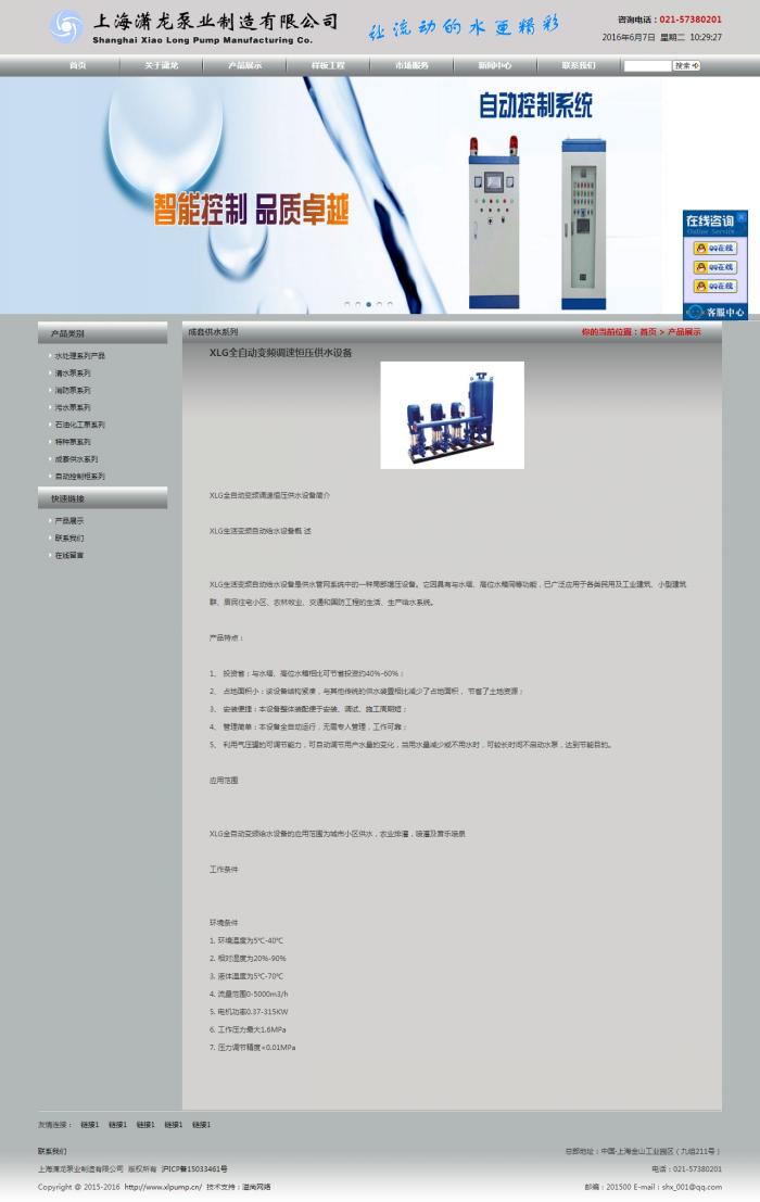 上海瀟龍泵業(yè)制造有限公司是由原國營滬申水泵廠轉(zhuǎn)制改組,由國內(nèi)多位流體技術(shù)專家發(fā)起成立,是以泵類產(chǎn)品制造為中心,集研發(fā)、生產(chǎn)、銷售為一體的股份制企業(yè) 。公司擁有一支高素質(zhì)的員工隊伍,產(chǎn)品品種達八百多種,涵蓋水泵系列、無負(fù)壓供水設(shè)備、生活、消防成套供水設(shè)備、變頻控制柜、消防控制柜、閥門等。產(chǎn)品廣泛應(yīng)用于建筑、消防、水利、電力、環(huán)保、石油、化工、醫(yī)藥等各個領(lǐng)域。