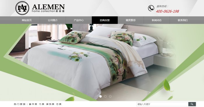 南通愛麗盟紡織品有限公司是一家集研發(fā)、設(shè)計(jì)、生產(chǎn)銷售為一體的多元化公司。專業(yè)生產(chǎn)高星級(jí)賓館、酒店紡織品配套用品有近十年歷史,公司產(chǎn)品銷售網(wǎng)絡(luò)覆蓋全國(guó),遠(yuǎn)銷歐洲、美洲、非洲、中東等國(guó)家和地區(qū)。公司主要產(chǎn)品:面料系列,40S-120S高織高密緞紋、緞條、段格、提花平紋等,成品系列,主要有被套、枕套、床單、被芯、枕芯、床墊、床裙、床尾巾等系列產(chǎn)品,以及餐飲布草毛巾浴衣類產(chǎn)品。
