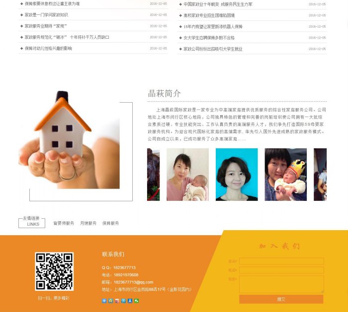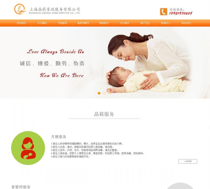 上海晶萩國(guó)際家政是一家專業(yè)為中高端家庭提供優(yōu)質(zhì)服務(wù)的綜合性家庭服務(wù)公司。公司地處上海市閔行區(qū)核心地段,公司獨(dú)具特色的管理和完善的崗前培訓(xùn)使公司擁有一大批綜合素質(zhì)過硬、專業(yè)技能突出、工作認(rèn)真負(fù)責(zé)的高端服務(wù)人才,我們爭(zhēng)先打造國(guó)際5S母嬰家政服務(wù)機(jī)構(gòu)。為迎合現(xiàn)代國(guó)際化家庭的高端需求, 率先引入國(guó)外先進(jìn)成熟的家政服務(wù)模式。公司自成立以來,已成功服務(wù)了眾多高端家庭. 我們的客戶主要面對(duì)商家、政界、中產(chǎn)階層、500強(qiáng)企業(yè)、駐中機(jī)構(gòu)代表等外籍人士獲得各界人士的好評(píng)。