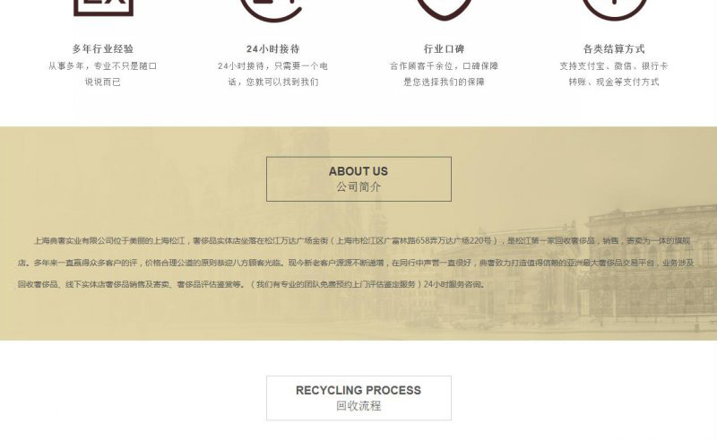 公司介紹:上海典奢實業(yè)有限公司位于美麗的上海松江,奢侈品實體店坐落在松江萬達廣場金街(上海市松江區(qū)廣富林路658弄萬達廣場220號),是松江第一家回收奢侈品,銷售,寄賣為一體的旗艦店。多年來一直贏得眾多客戶的好評,價格合理公道的原則恭迎八方顧客光臨,F(xiàn)今新老客戶源源不斷遞增,在同行中聲譽一直很好,典奢致力打造值得信賴的上海最大奢侈品交易平臺,業(yè)務涉及回收奢侈品、線下實體店奢侈品銷售及寄賣、奢侈品評估鑒賞等。(我們有專業(yè)的團隊免費預約上門收奢侈品服務)24小時服務咨詢。