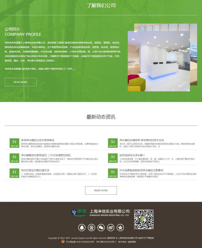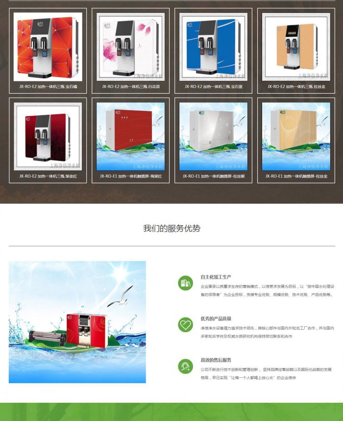 公司介紹:凈信凈水機隸屬于上海凈信實業(yè)有限公司,是經(jīng)國家工商部門批準(zhǔn)注冊的經(jīng)營家用凈水機、直飲機、管線機、純水機、商務(wù)機的凈水設(shè)備制造商,專業(yè)從事研發(fā)、生產(chǎn)和經(jīng)營凈水設(shè)備,產(chǎn)品包括家用純水機、直飲機,軟水機、商用純水機、超濾凈水機、無膽即熱管線機,中央凈水器,各種凈水耗材,大型水處理設(shè)備、等。主營產(chǎn)品為家用和商用RO純水機及配套的水家電產(chǎn)品以及軟水凈水設(shè)備,已建數(shù)百個渠道惠及千萬家庭,定制近百個校園直飲水BOT專案,并承接賓館、酒店、社區(qū)、單位等大型直飲水工程項目。