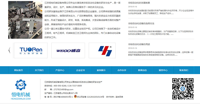 江蘇恒電機(jī)械設(shè)備有限公司專業(yè)從事各類非標(biāo)自動化設(shè)備的研發(fā)與生產(chǎn),是一家集研發(fā)、設(shè)計、生產(chǎn)、銷售以及售后服務(wù)于一體的多元化企業(yè)。公司研發(fā)基地坐落于江蘇省昆山市北部原創(chuàng)型企業(yè)基地,公司具有較強(qiáng)的資源集成和運(yùn)用能力,雄厚的研發(fā)實力、廣泛的營銷網(wǎng)絡(luò)、強(qiáng)大的資金實力和項目融資能力,形成了涵蓋設(shè)計、研發(fā)、制造、系統(tǒng)集成、大型設(shè)備成套等方面的完整產(chǎn)業(yè)鏈,具備獨(dú)特的產(chǎn)業(yè)價值和市場競爭優(yōu)勢。公司一直以來注重技術(shù)研發(fā),注重自主知識產(chǎn)權(quán)。公司已培育了一支由機(jī)械設(shè)計工程師、電氣工程師、機(jī)械制造工藝工程師為主體的團(tuán)隊,專門從事自動化設(shè)備的研發(fā)工作。 公司主要業(yè)務(wù)包括:軟管裝配與扣壓自動全自動化生產(chǎn)線,密封測試設(shè)備(氣密檢測設(shè)備,水密檢測設(shè)備),電子元件包裝機(jī),非標(biāo)自動化裝配檢測生產(chǎn)線 。