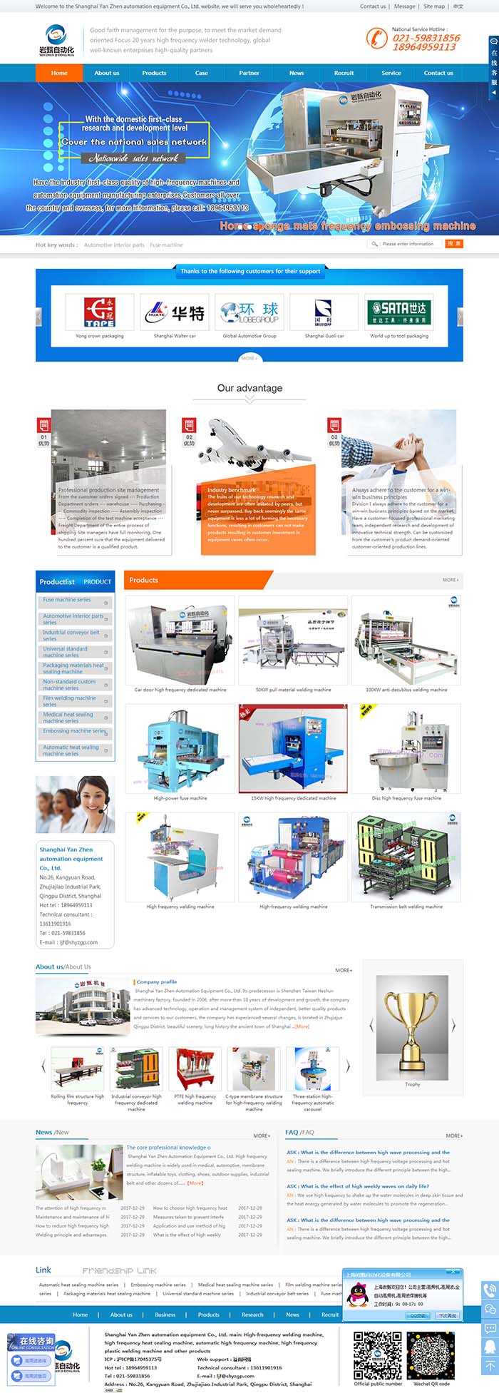 上海巖甄自動(dòng)化設(shè)備有限公司其前身是深圳臺(tái)資賀順機(jī)械廠,公司成立于2006年,歷經(jīng)十多年的成長與發(fā)展,公司有先進(jìn)的技術(shù)、具有公司內(nèi)部的營運(yùn)與管理體系,精益求精的產(chǎn)品服務(wù)于廣大客戶,公司歷經(jīng)幾次變遷,現(xiàn)位于風(fēng)景秀麗、歷史悠久的上海市青浦區(qū)朱家角古鎮(zhèn)。目前公司具有4000余面積的廠房,現(xiàn)有員工50多人,工程師4人,各類技工15人。本公司是國內(nèi)高頻機(jī)及自動(dòng)化設(shè)備研制廠家,集研發(fā),制造、服務(wù)的生產(chǎn)企業(yè)。擁有雄厚的技術(shù)力量、先進(jìn)的加工設(shè)備,多名工程師與員工團(tuán)隊(duì)。獨(dú)特的管理體制、完善的服務(wù)體系,公司嚴(yán)格執(zhí)行ISO9001質(zhì)量標(biāo)準(zhǔn)與國際CE認(rèn)證標(biāo)準(zhǔn)。