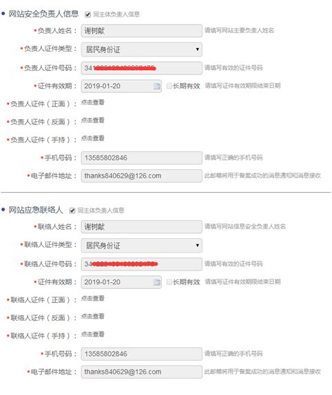這個(gè)可以直接選擇 “同主體負(fù)責(zé)人信息”或者另外填寫,都可以。